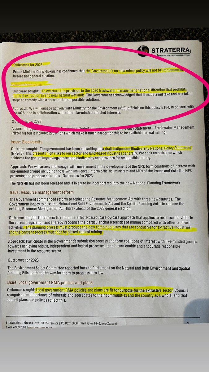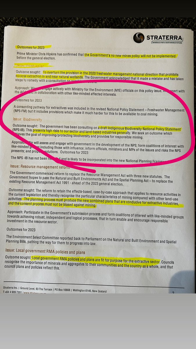 Again, in the biodiversity crisis when Aotearoa has already suffered horrifically high extinction rates - Straterra is working to prevent indigenous biodiversity from being protected.