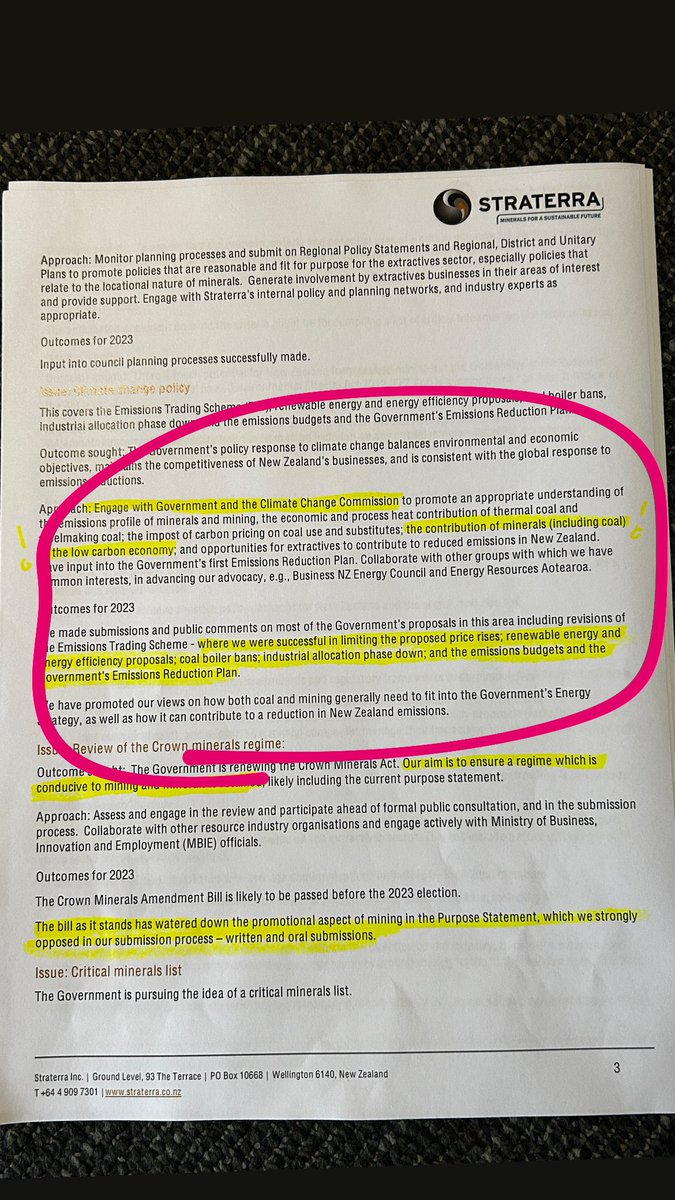 In the #climatecrisis, when the science clearly shows burning coal has to end if we are to maintain a livable planet, Straterra works to influence the Climate Change Commission and Govt policy to ease restrictions on coal.