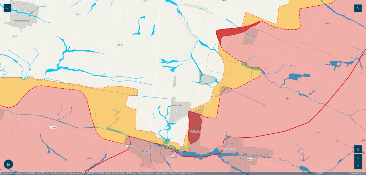 3/ Russian forces are additionally trying to advance on Vuhledar's northeast flank via Vodyane and southwestern flank via Prechystivka, likely in an effort to encircle the Ukrainian grouping in Vuhledar and force it to withdraw.