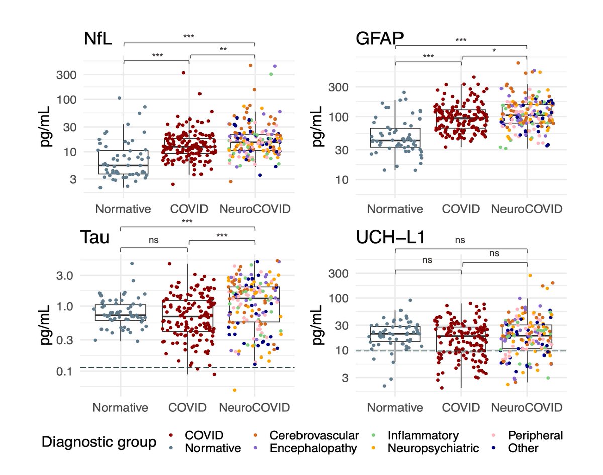 4. In the COVID group, cognitive deficits were associated with symptoms of depression, increased multimorbidity, and a raised glial fibrillary acidic protein (GFAP). GFAP is a marker of astrocytic injury -> our brains immune cells
