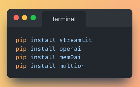 Run the following commands from your terminal to install the required libraries:
