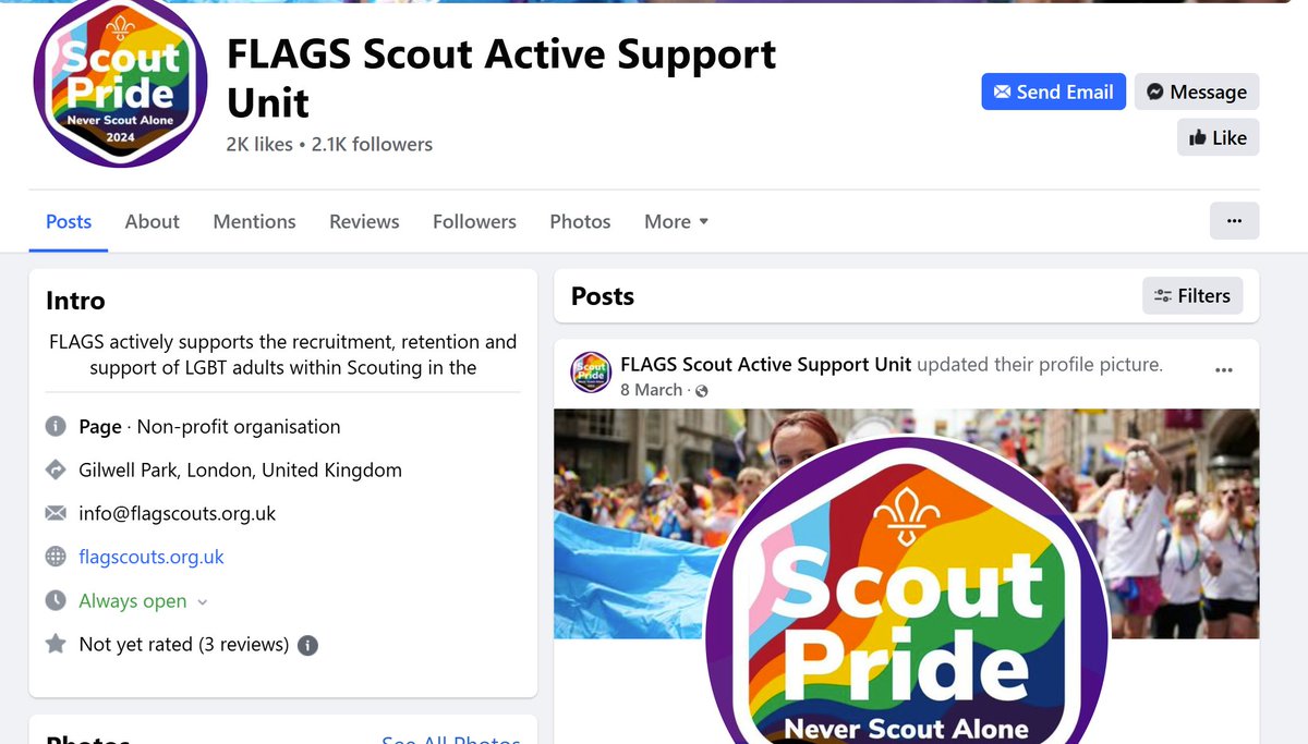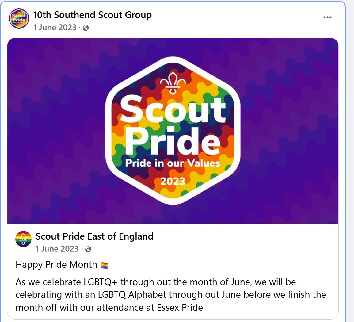 Another Scout-focused Facebook public group is 'Scout Pride East of England'. Here is a screenshot.