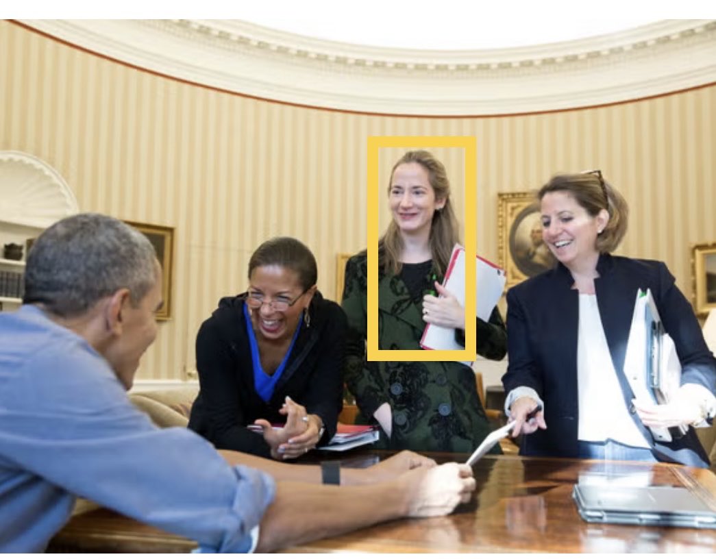 The woman in the yellow square is Avril Haines. To the left is Susan Rice; to the right is current deputy AG Lisa Monaco.