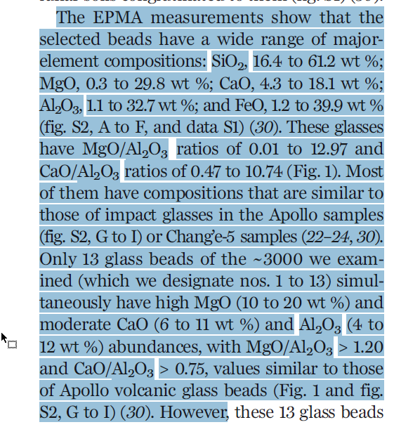 Díky měsíčním vzorkům, které přivezli astronauti v rámci misí Apollo, totiž víme, že skleněné kuličky vzniklé sopečnou činností, musí mít specifické chemické složení.