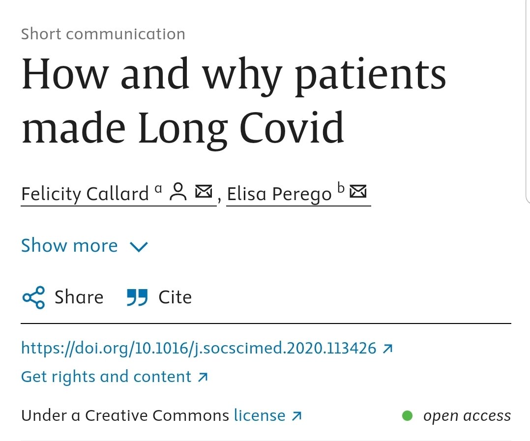 @lapsyrevoltee In May 2020, reports of prolonged disease were multiplying. Prof Felicity Callard blew up the concept of "mild Covid" in @somatosphere (8 May). A team of patients in the US produced a survey of persistent symptoms (11 May). The name and hashtag #LongCovid coined on Twitter