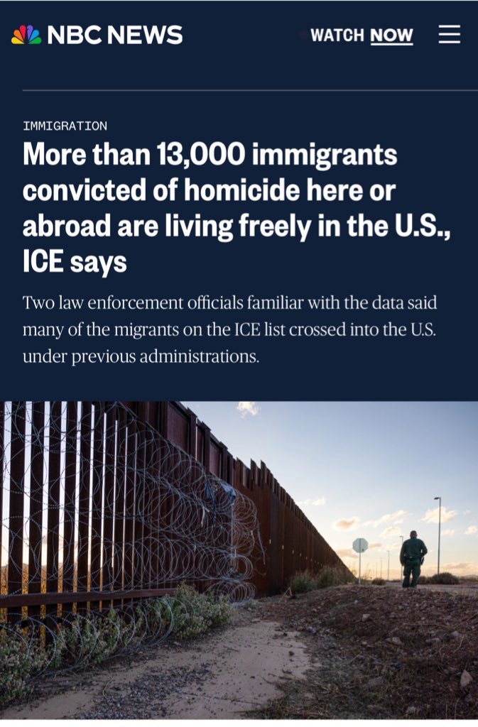 No matter your politics, these new numbers are shocking. Of the 7 million migrants that ICE released while their cases are being processed, 663,000 have criminal histories, 13,000 were convicted of homicide, 16,000 of sexual assault, and 1,845 face homicide charges. 😬