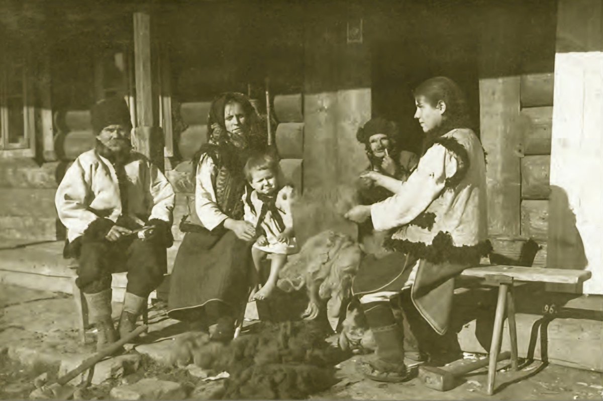 Rodzina huculska w odświętnych strojach