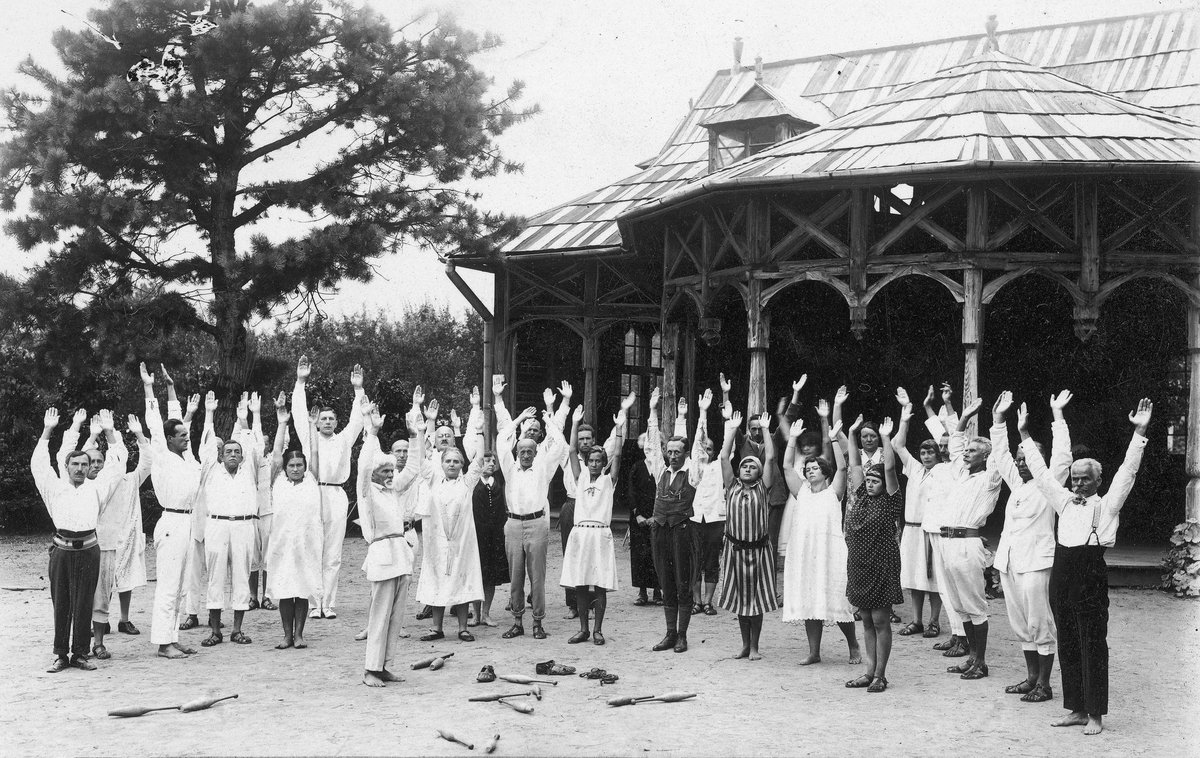 Poranna gimnastyka w lecznicy dr. Apolinarego Tarnawskiego w Kosowie Huculskim