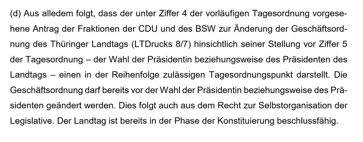 @cdu_thueringen und @BSWThueringen haben verloren soweit sie beantragt hatten, dass nach ihrem vorgeschlagenen Modus der Landatagspräsident gewählt werden muss. Darüber muss nämlich zunächst der Landtag abstimmen.