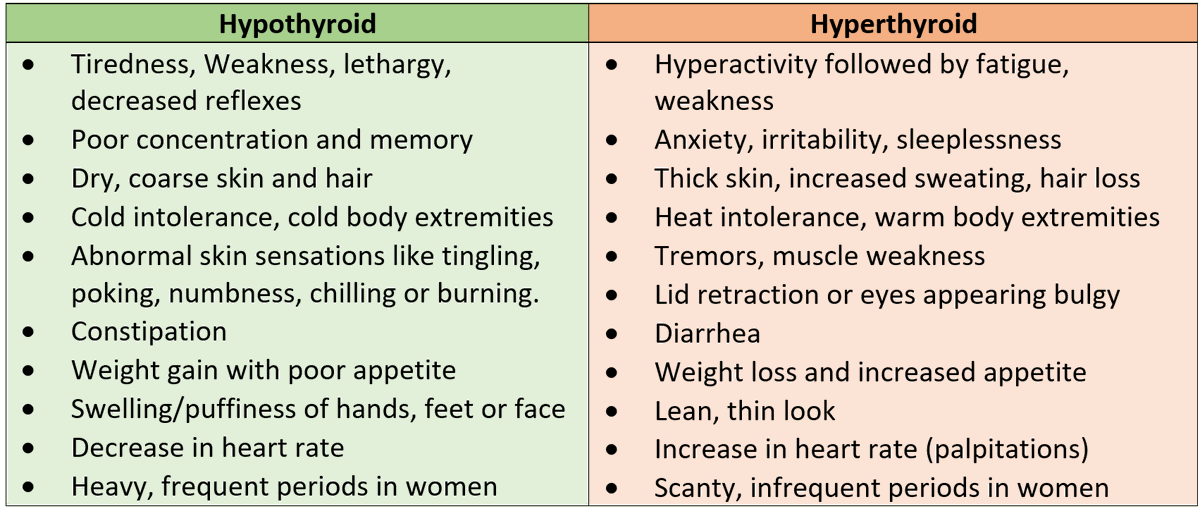 From my experience treating thyroid issues, the common symptoms are: