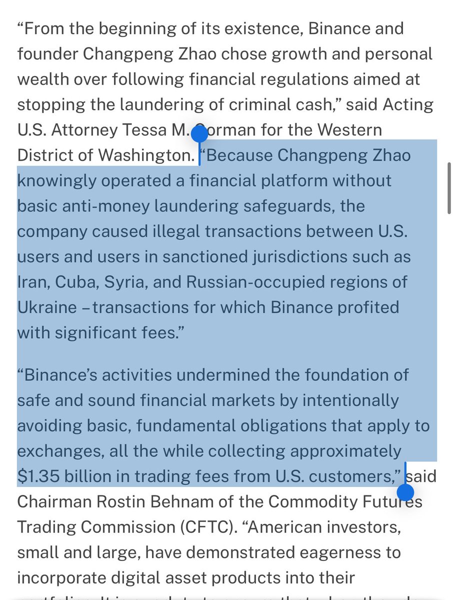 Binance profited from these transactions, collecting $1.3bil in fees from US customers.