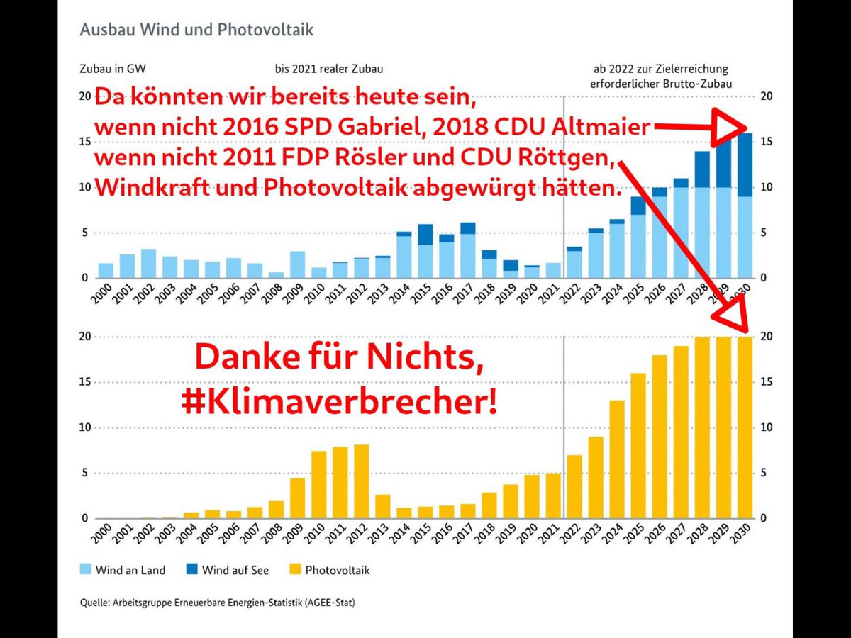 Die #CDUCSU hat 2011/12 und 2017 mit diversen Gesetzesverschärfungen dafür gesorgt, dass die Zukunftstechnologien Photovoltaik und Windkraft aus Deutschland 13/17
