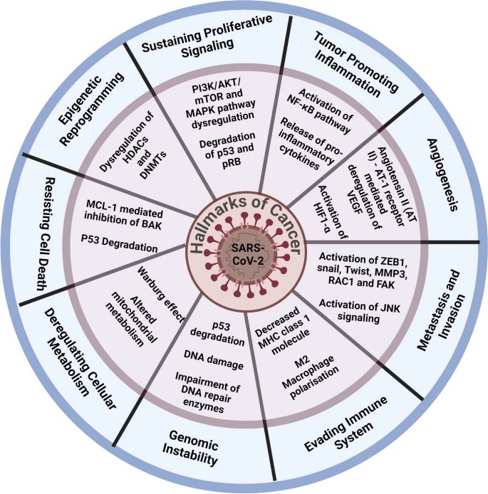 Die Erkenntnisse dieser Studie deuten darauf hin, dass das #SARSCoV2-Virus möglicherweise als „Onkovirus“ wirken und das Krebsrisiko bei infizierten Personen erhöhen könnte.