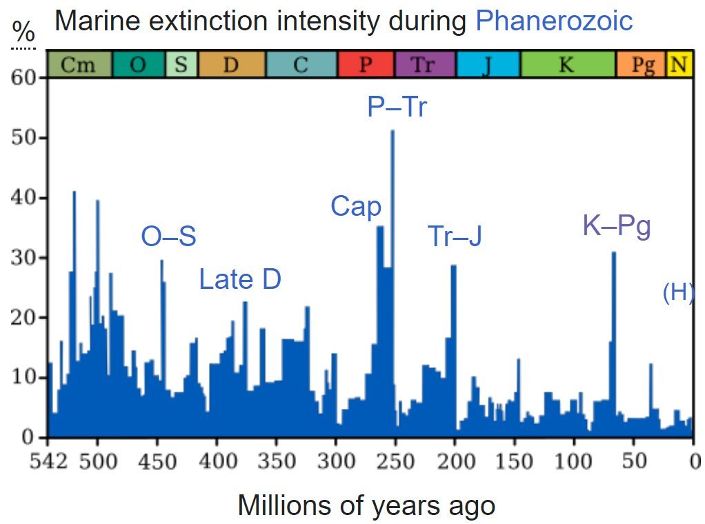 Jenže jelikož nám proběhlo masové vymírání, které smazalo 80 až 95 % všeho mořského života, ve vodách světového oceánu toho nezbylo moc živého, co by mohlo oxid křemičitý (ale i další látky) brát.