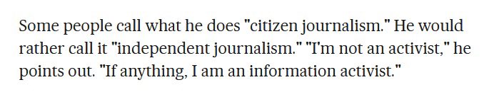 …und Pool sagte gegenüber El Pais aus, er sei kein Aktivist, sondern ein Journalist. 2018 sagte er, dass „ich mich nicht mit Occupy Wall Street verbünde und es auch nie getan habe“, und später 2021 bezeichnete er die Occupy-Bewegung als „korrupt“.