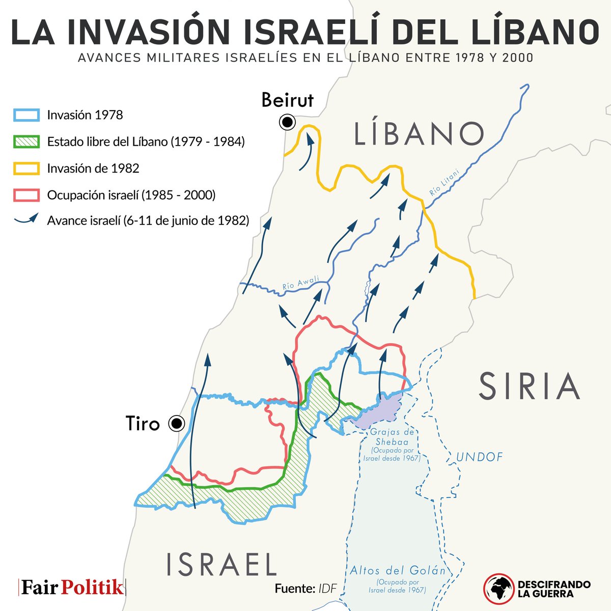 🇮🇱🇱🇧 Esta es la tercera vez que Israel invade Líbano y la segunda que se enfrenta abiertamente contra Hezbolá para tratar de desarticular las capacidades de la milicia en el sur de Líbano.