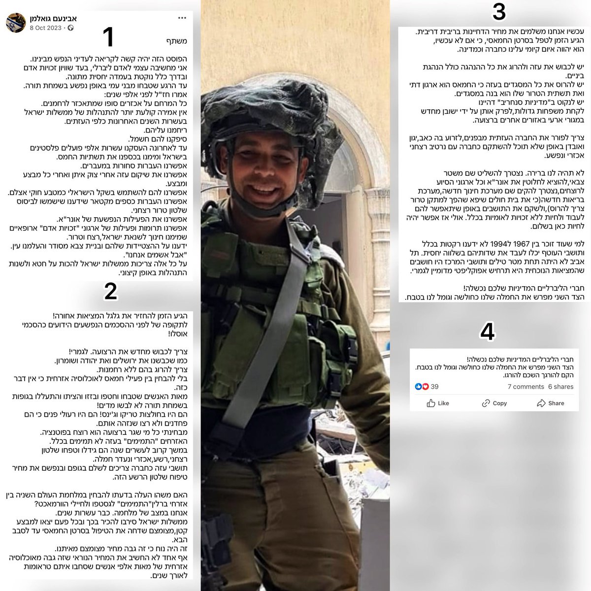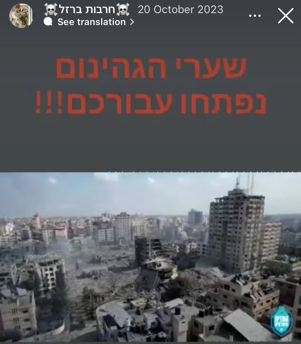 98th division commander Maj. Avinoam Goelman wrote “I consider myself a liberal… We need to kill [Gazans] mercilessly. Without distinguishing between Hamas & civilians"