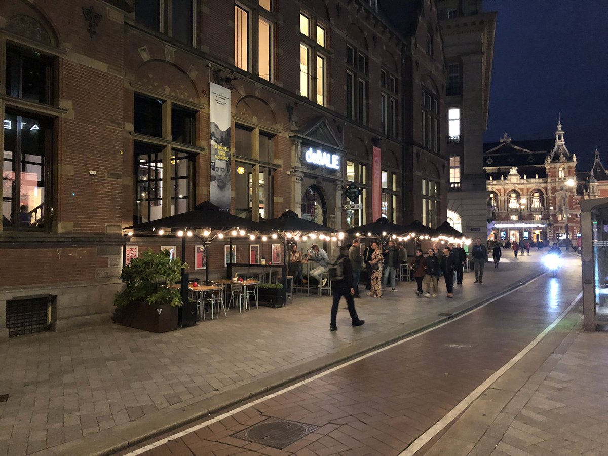Dit is in een café in de Hallen, een soort horecading waar ook ergens de talkshow van Jinek wordt opgenomen. Even zoeken.