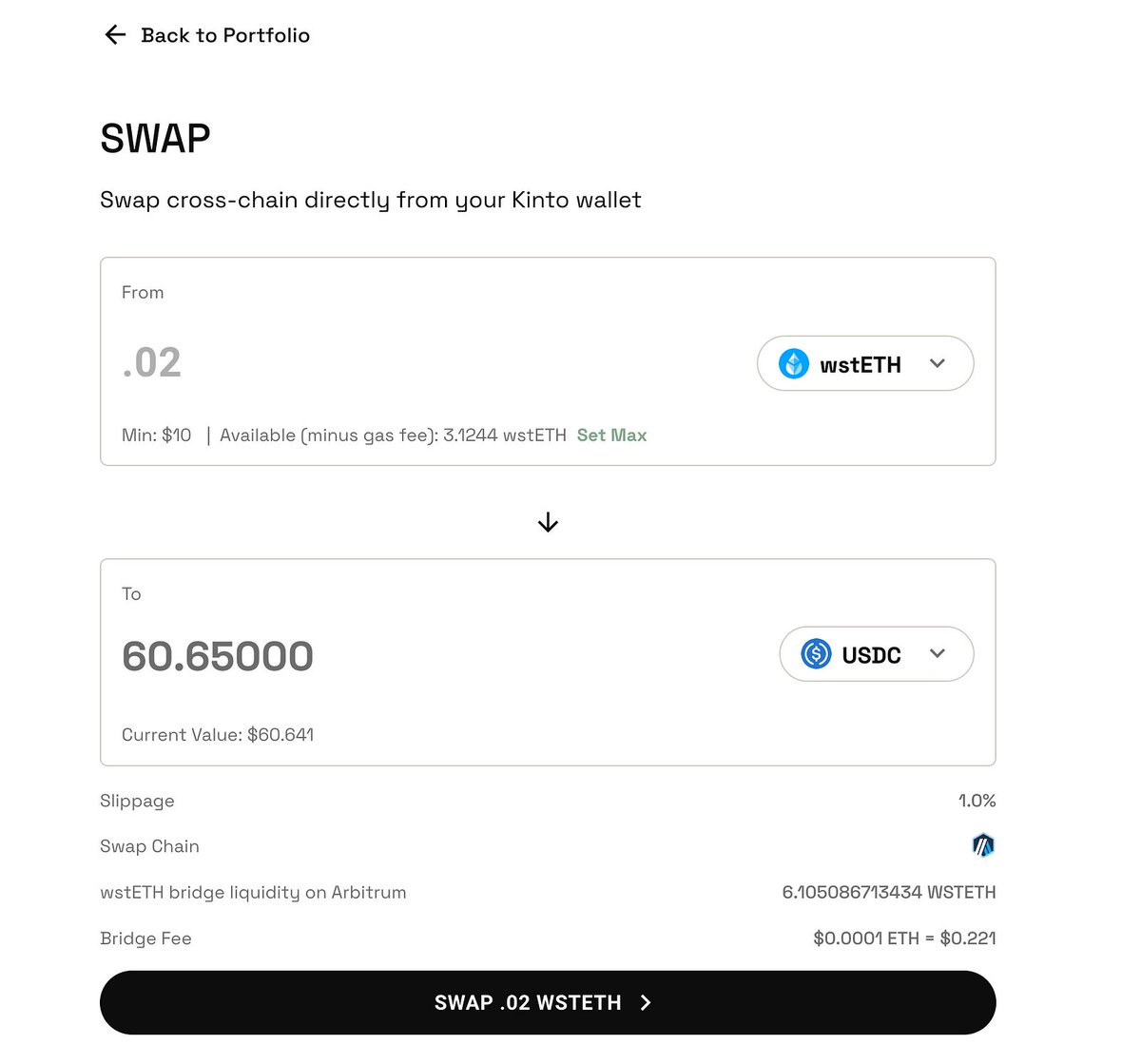 Swap assets across Ethereum with your fingerprint without leaving your Kinto-insured wallet.