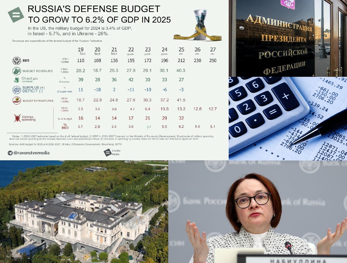 The Russian federal budget for 2025–2027 provides for a significant increase in spending on defense and the presidential administration. In 2025, defense spending will increase by 27%, reaching 13.2 trillion rubles, which will amount to 6.2% of the country's GDP. Together 1/9