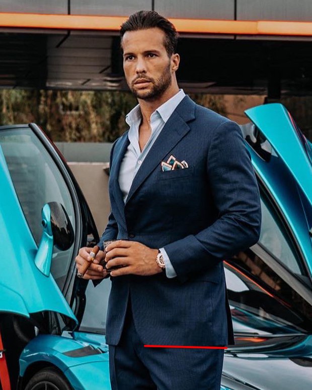 For instance, Tristan Tate claims this is a $20k suit. But the chest is too tight, which is creating a dent in the sleevehead and forcing the lapels to buckle away from his body. The front-back balance is also wrong, so the front of his jacket looks like it's riding up on him.