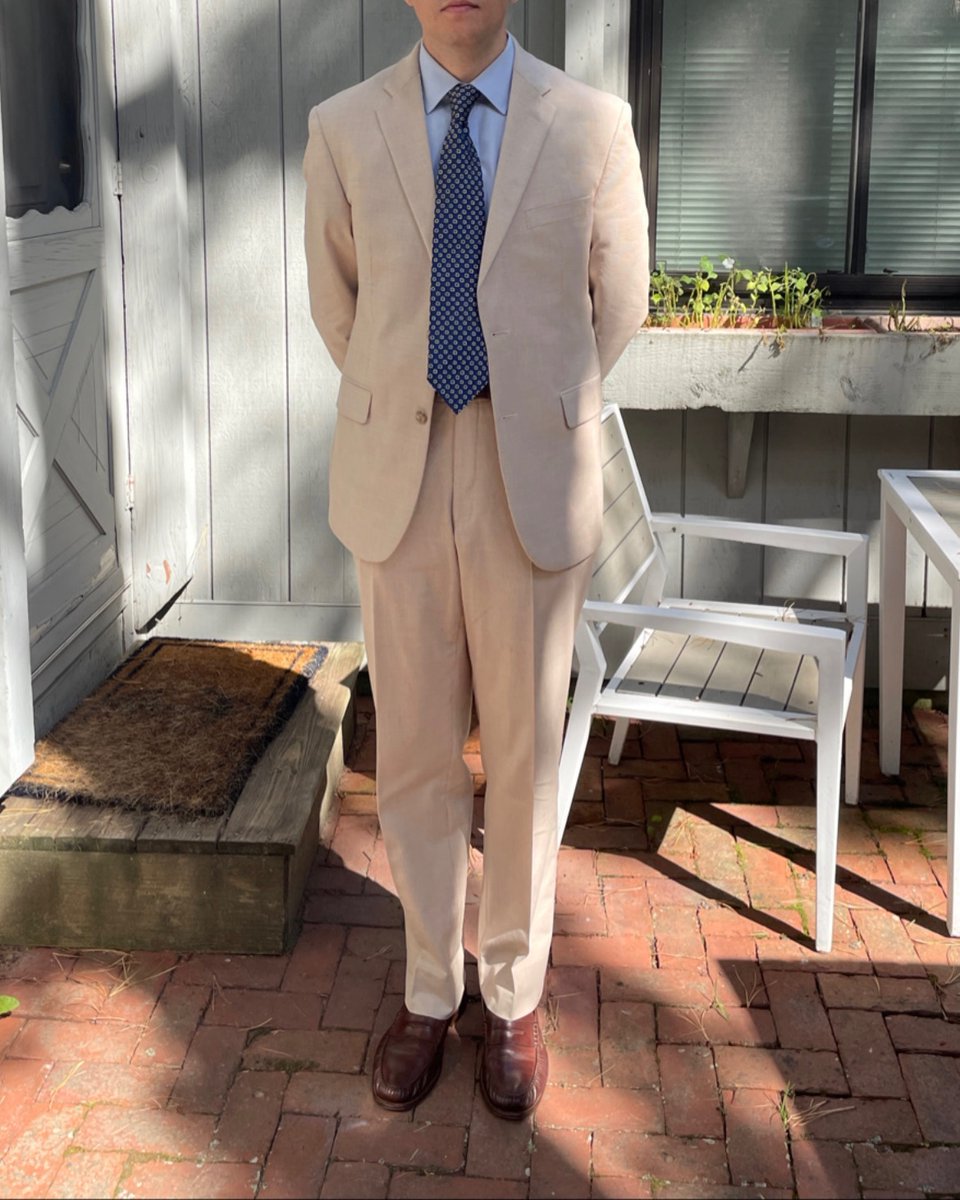 Conversely, here's @MrSamWilkin and @andrewdefrank. The first is wearing a $500 Suitsupply suit. The second is wearing a $200 suit from the prestigious tailoring house Jos A Bank. Neither exhibit any of the issues in Tate's $20k bespoke garment.