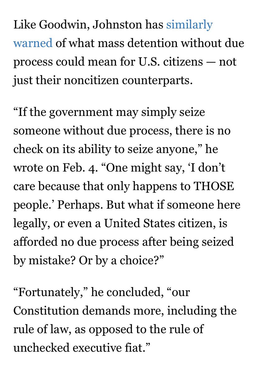2) BLOWING OFF DEADLINES: When detainees sue for release, the administration is increasingly blowing off court-ordered deadlines to response. It's become almost routine and has led judges to order release in some cases. politico.com/news/2026/02/1…