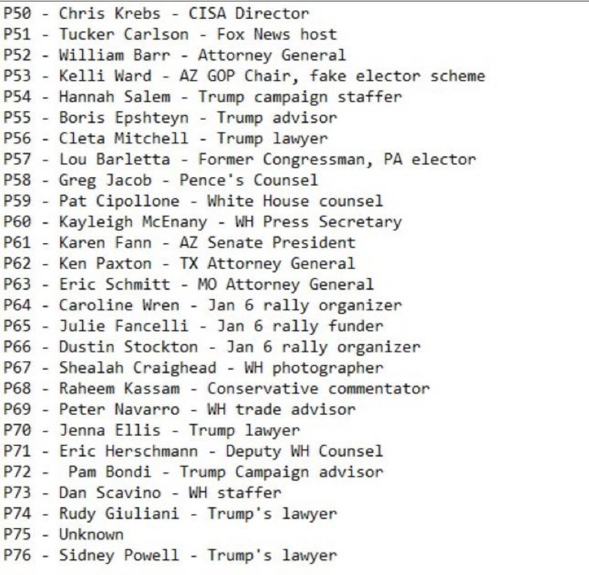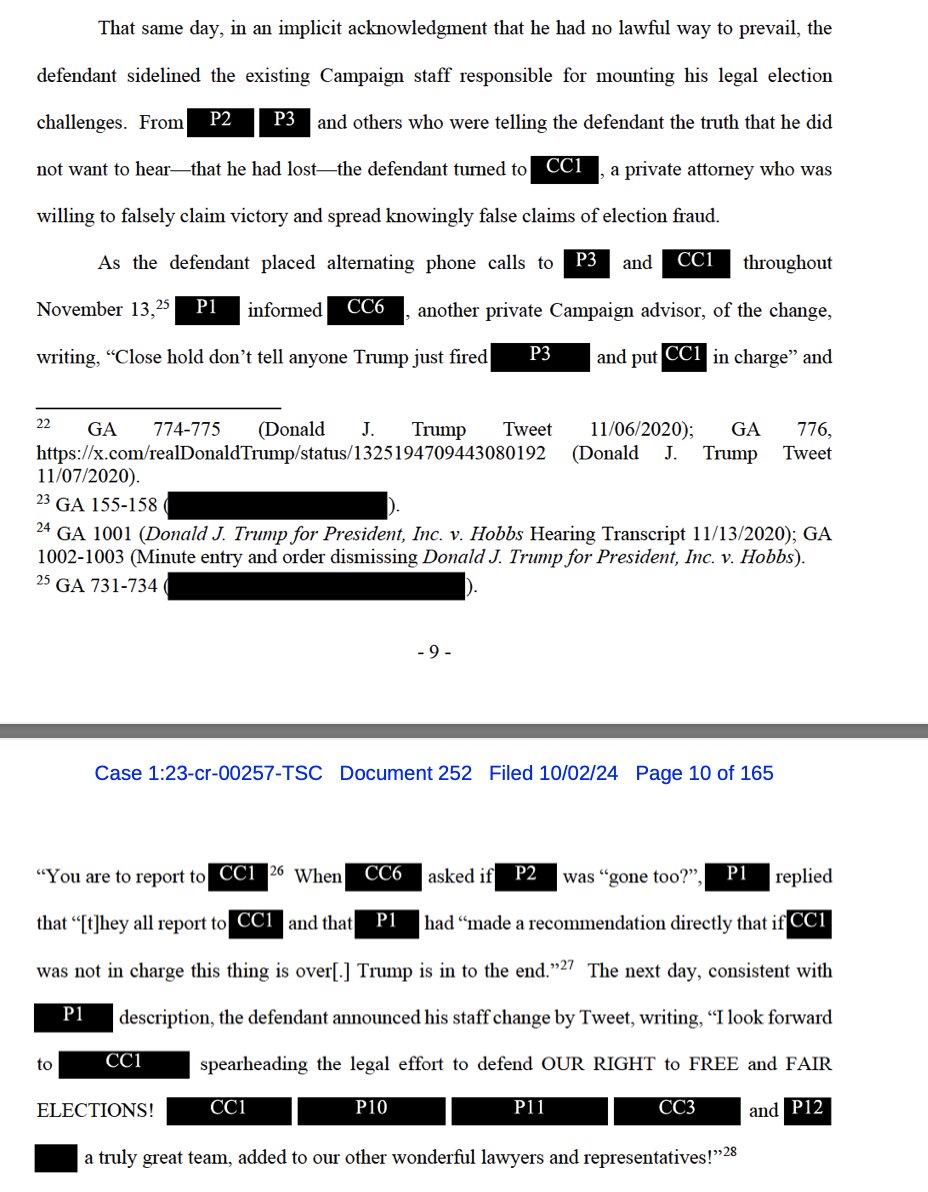 Supplement: Here is a list of all of the redacted names for the entire Jack Smith filing. (via @letsgohawksgpg) 18/