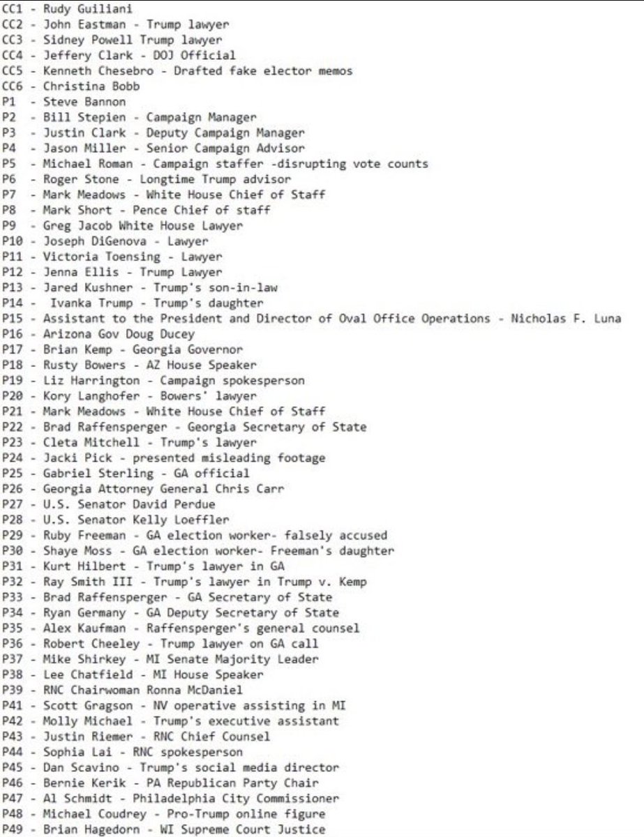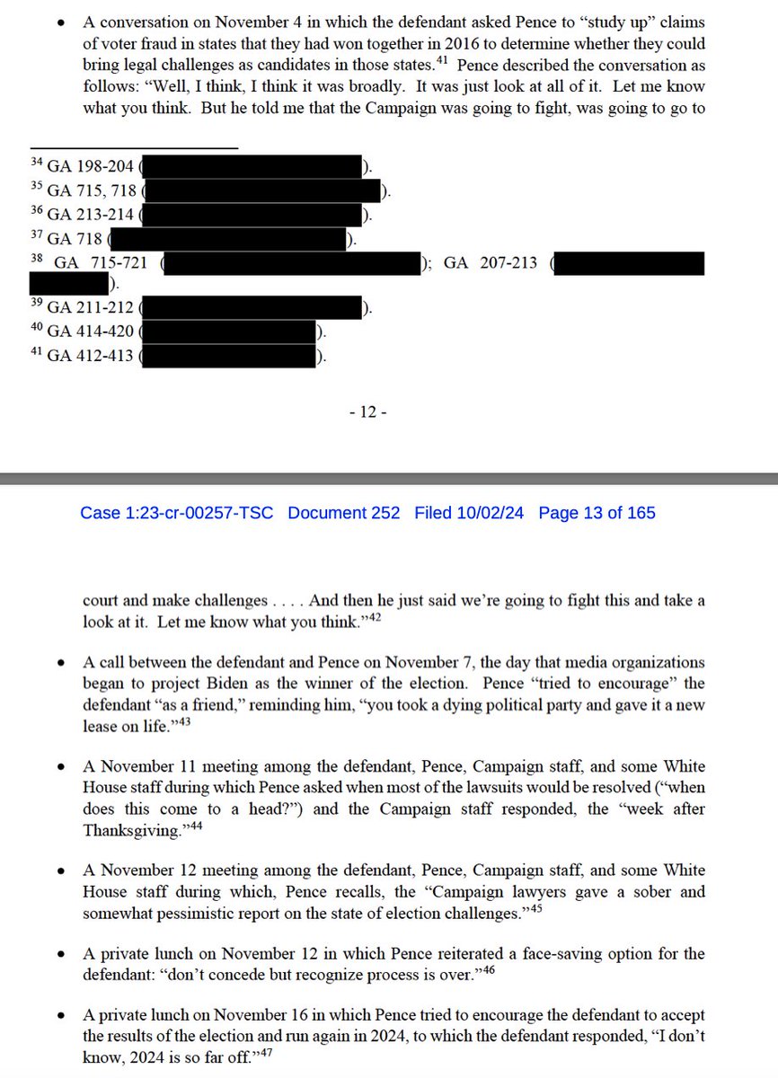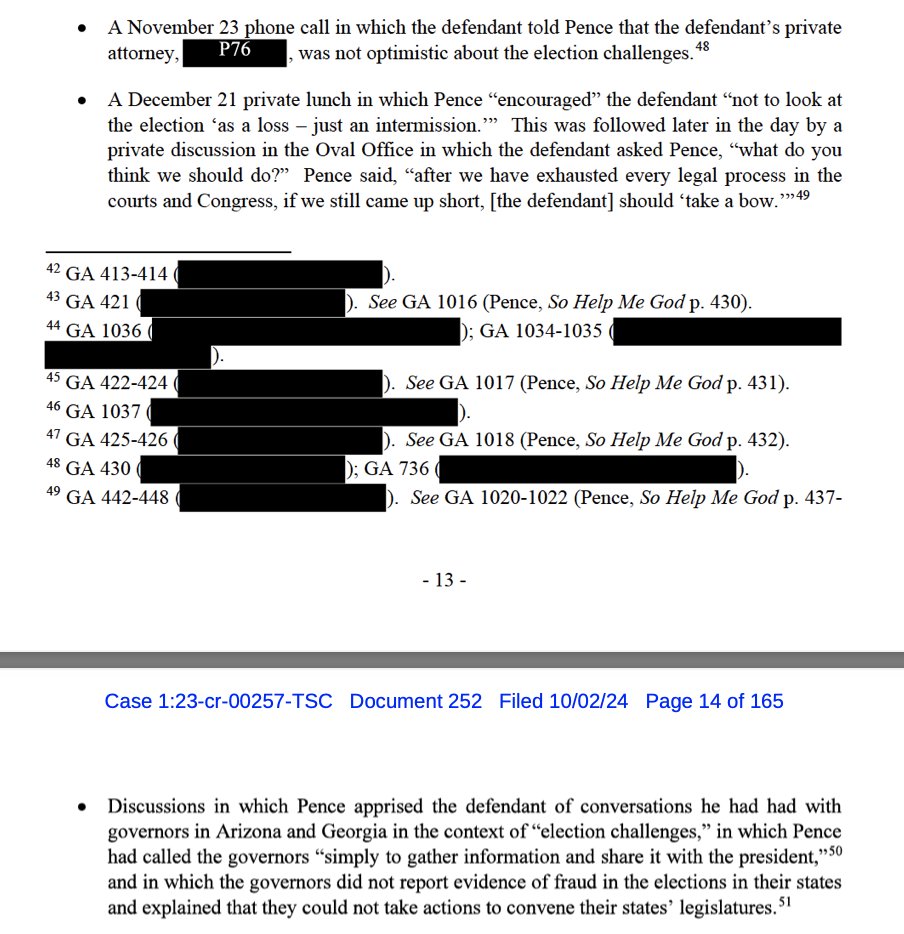 Trump was repeated told by Pence and lawyer Eric Hershmann (P9) that he had no legal standing and Smith provides evidence of all of these conversations, which Trump intentionally ignored. Jared Kushner is (P13). 5/