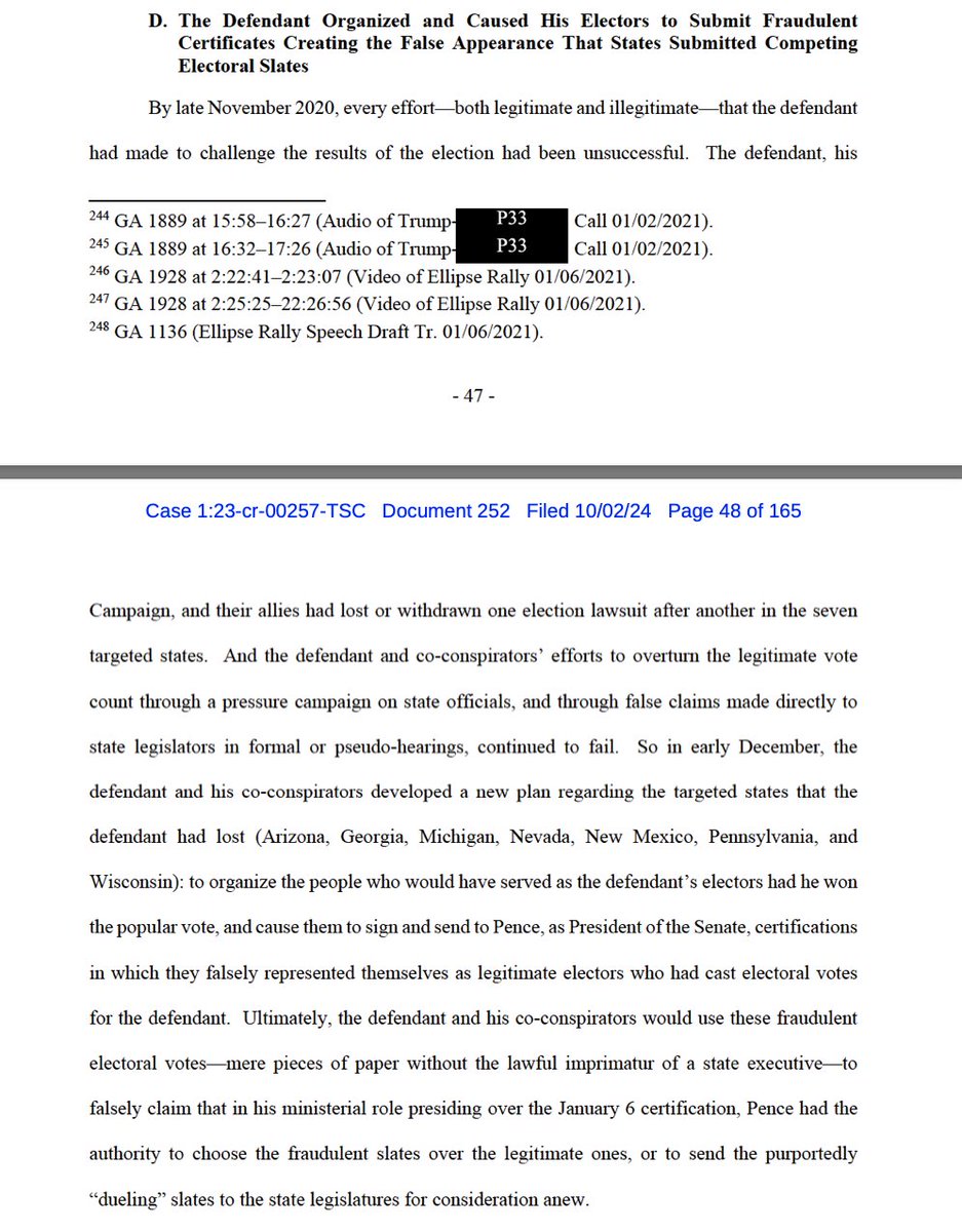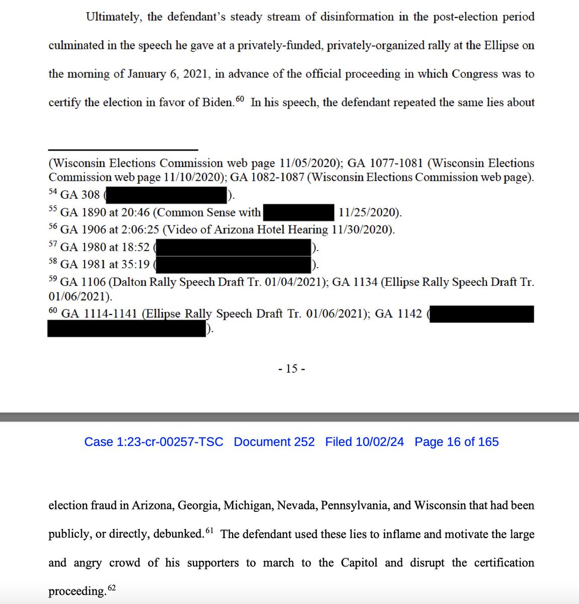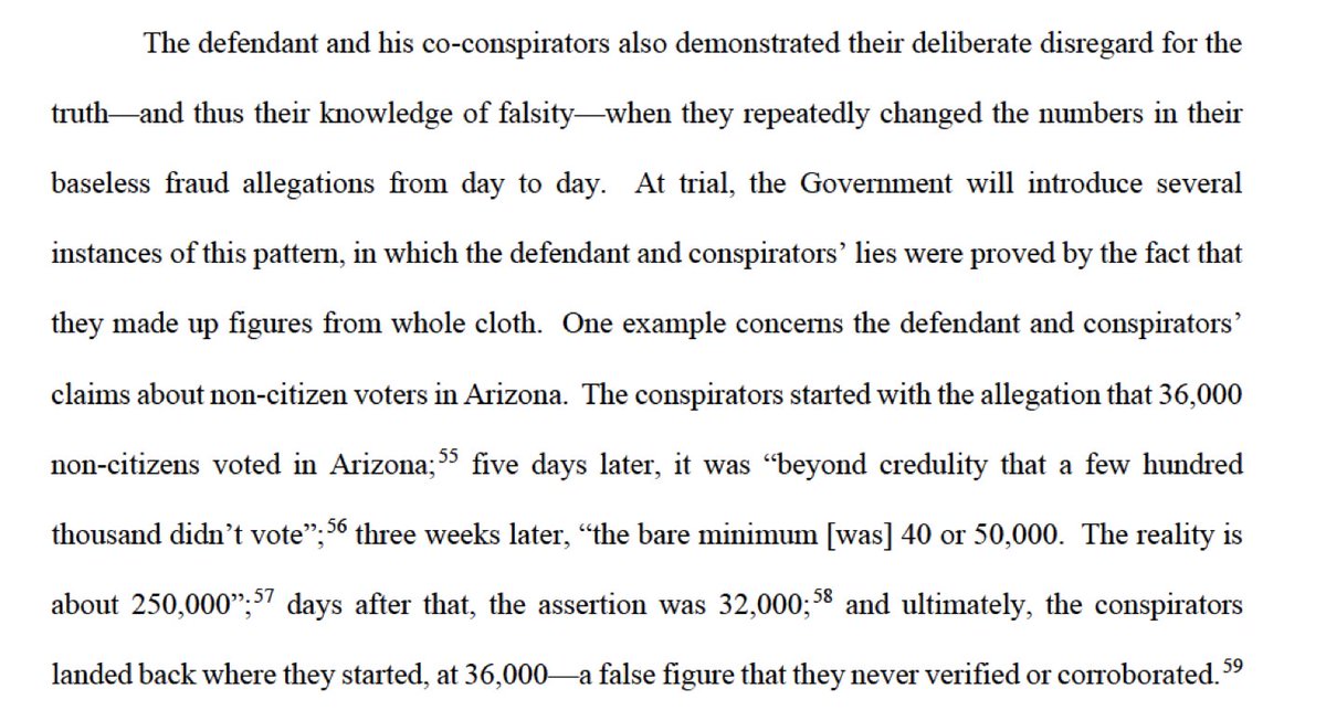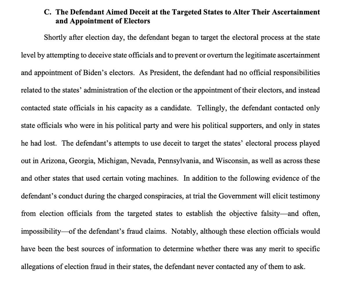 Smith takes 3- pages to lay out the details for how Trump and Guiliani, et al. actively tried to disrupt the certification of Biden's win in Arizona, Georgia, Michigan, Nevada, Pennsylvania, Wisconsin, and with voting machines across multiple states. 9/