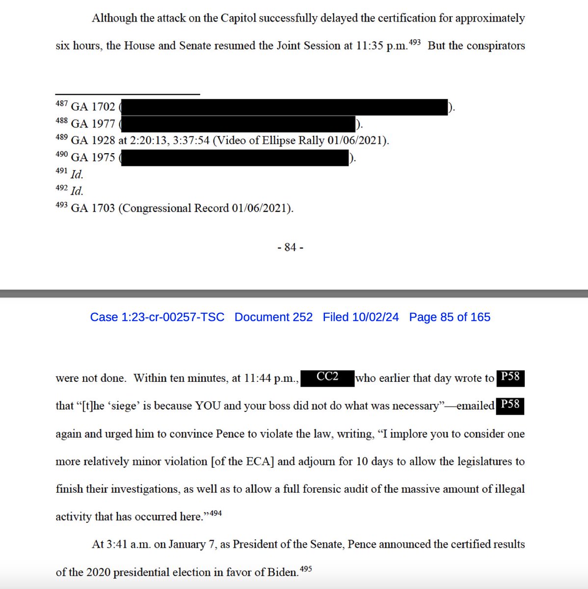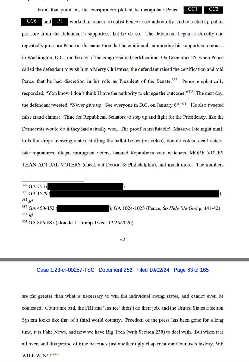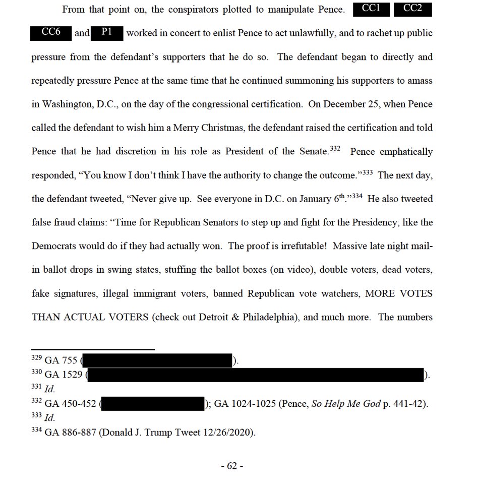 Trump, Guiliani, and other co-conspirators actively tried to "manipulate" Mike Pence, who knew the election was fair and not stolen, into declaring fraud and refusing to certify the election results on Jan. 6 and Smith provides PAGES of evidence. 11/ pic.x.com/csbliaWgTi