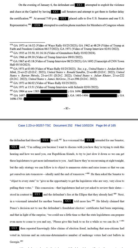 On the night of Jan 6, Trump "further exploited the day's violence" by having Rudy Giuliani contact more Senators and try to persuade them to "further delay the certification" using "knowingly false" election fraud claims. 13/