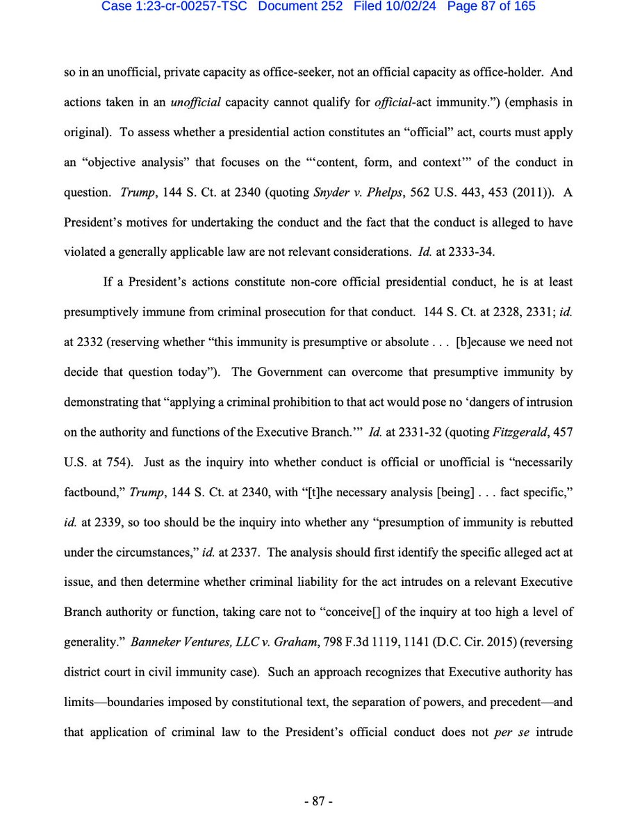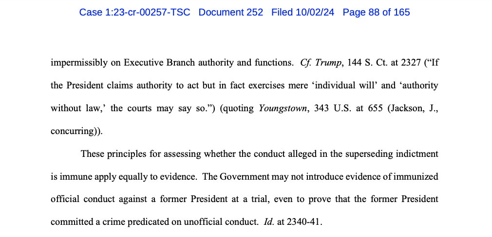 NEW: Judge Chutkan has unsealed Jack Smith's 165-page argument which provides evidence of Trump's criminal conduct and breaks-down Trump's plan for resolving immunity claims in his favor. Below are the salient points made by Smith. 1/