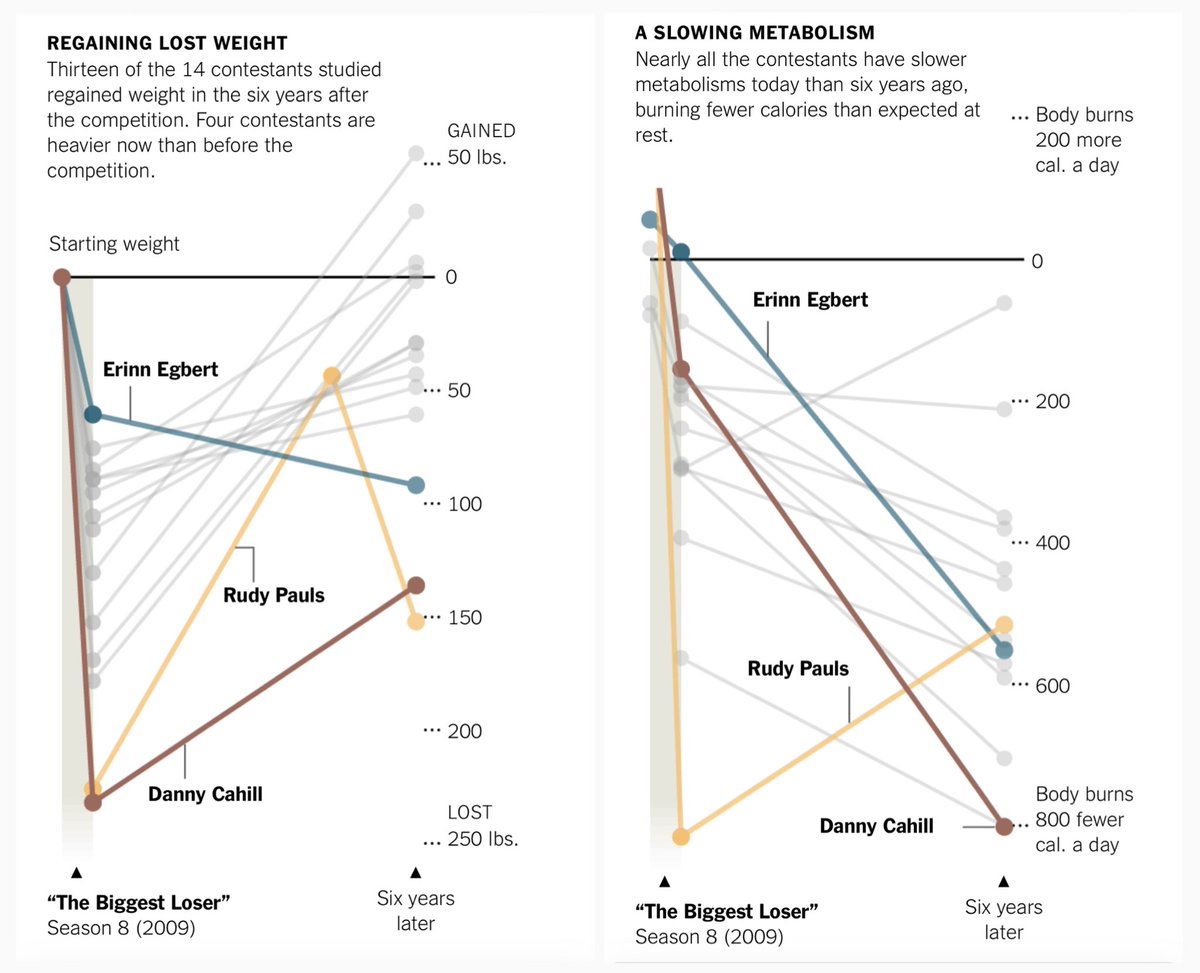 “As the years went by and the numbers on the scale climbed, the contestants’ metabolisms did not recover.”[56]