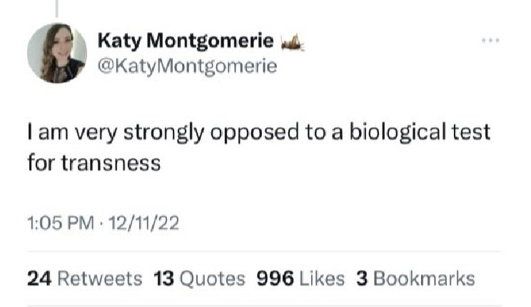The ironic thing is, the researchers working on this were probably woke activists themselves who thought they were doing something that would be good for the trans community, some form of academic virtue signalling. What they didn't realize is that the AGP's who run the transgender movement know that they aren't women and that even if there WAS a medical test for dysphoria, they would all fail it.