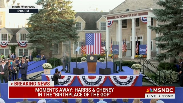"Thank you Liz!" chants for Liz Cheney as she takes the stage at the Harris rally in Ripon, Wisconsin