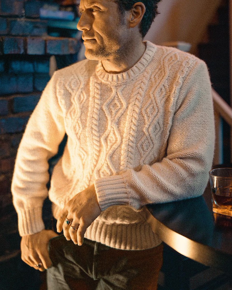 I don't know anything about womenswear, but I've never understood the handwringing over Aran sweaters in menswear. They are everywhere. Here are some. 🧵