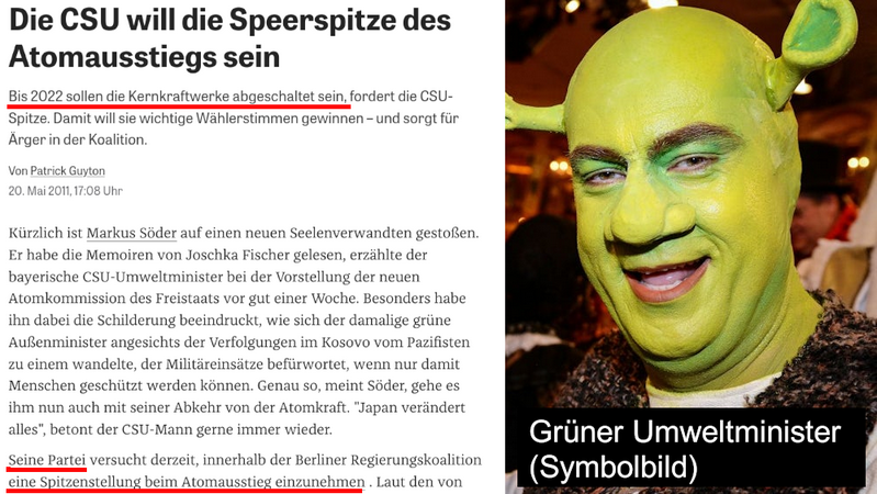 Aber eine GRÜNE Kanzlerin & ein GRÜNER Umweltminister in Bayern legten 2011 die Axt an die Wurzel deutscher Wirtschaftskraft