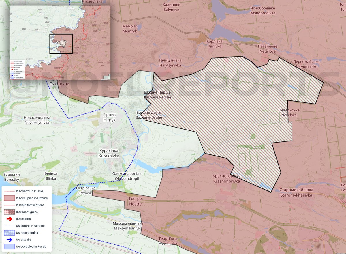 Bad news on the Pokrovsk front. The area which was considered a gray zone north of Krasnohorivka is under Russian control, Ukrainian forces have left this area. Also both Zhelanne Pershe and Zhelanne Druhe are under Russian control.