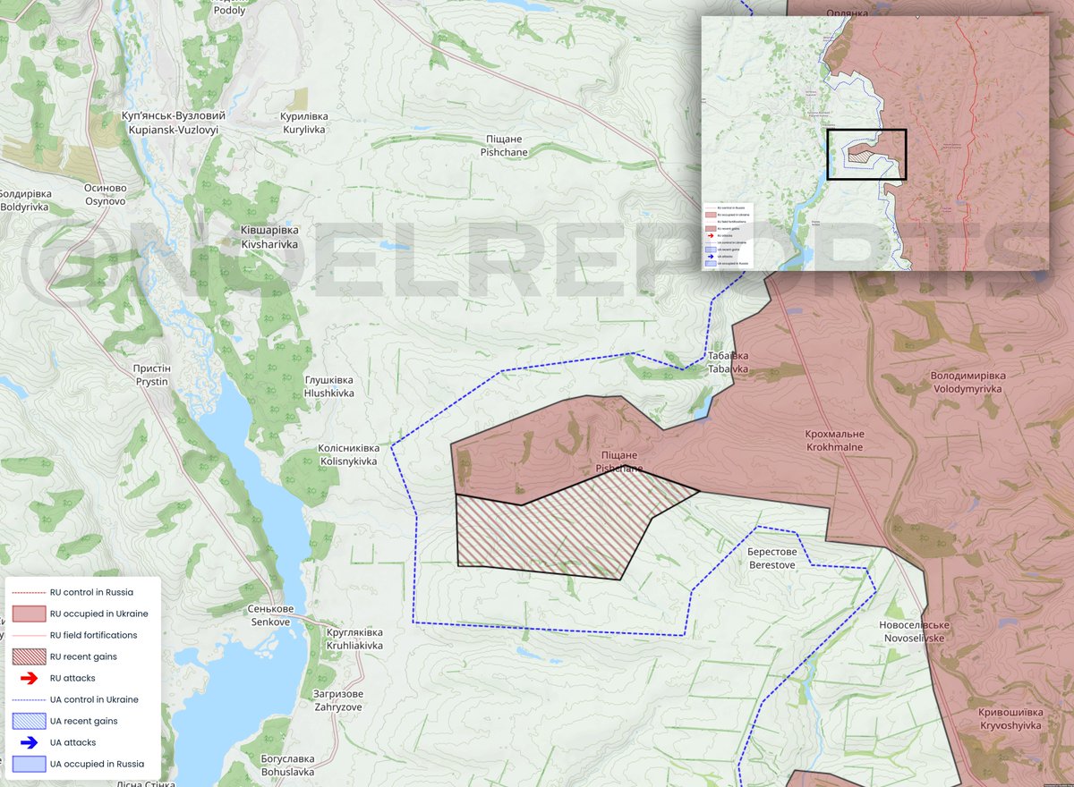 South of Kupyansk, Russian forces have advanced near Pishchanivka despite previously failed mechanized attacks. It is very likely that Ukraine will lose the area east of the Oskil river.