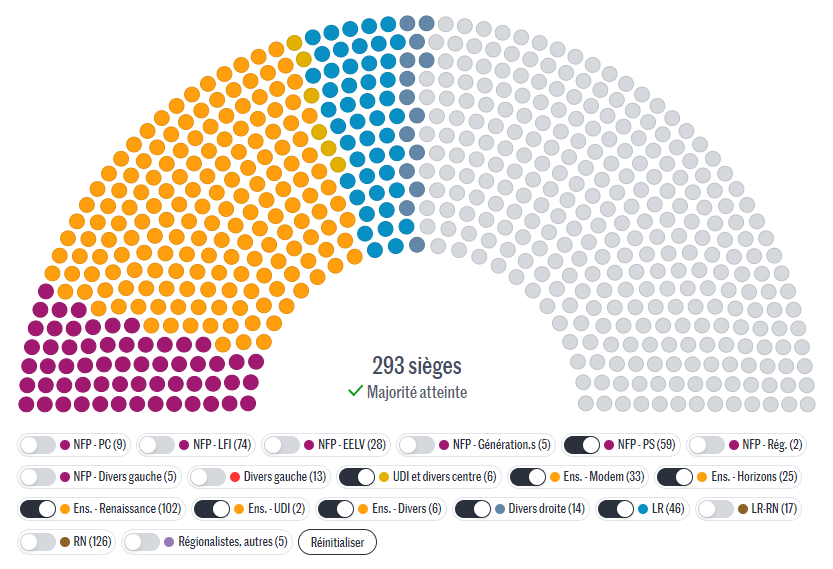 PS + macronie + LR = 279 sièges. Il en manque encore 10.