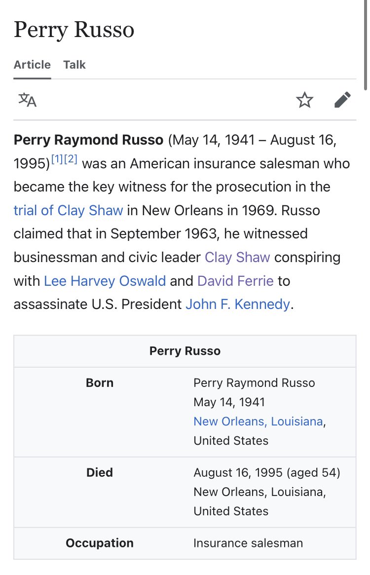 Now to me, this really exactly explains Jim Garrisons “Star Witness” Perry Russo better than anything else. He said he came forward after the death of his friend David Ferrie.