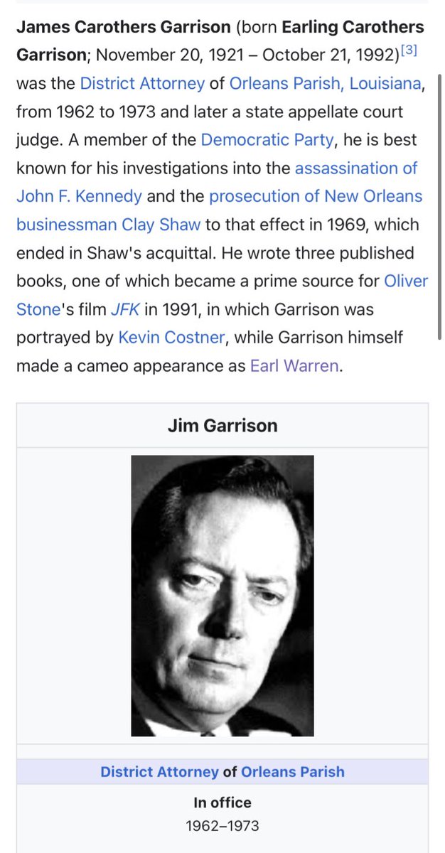While i do think Jim Garrison was trying to do the right thing, I believe he couldn’t see past the gatekeeping and truly believed it was the CIA.