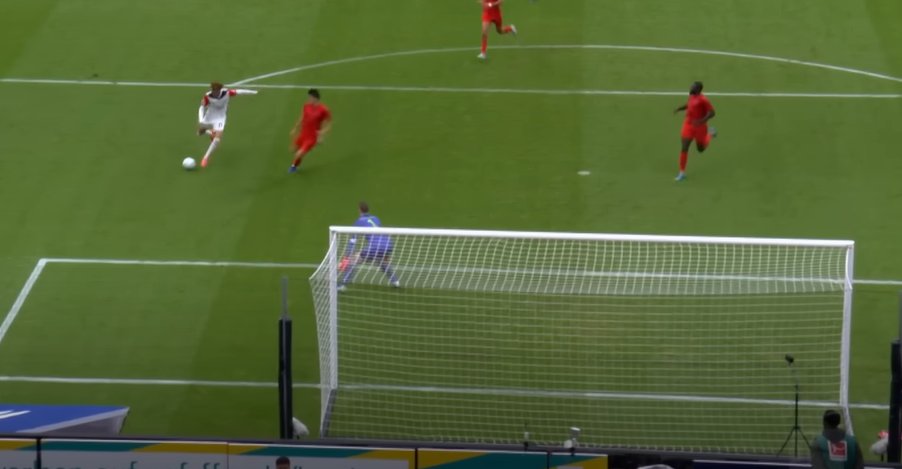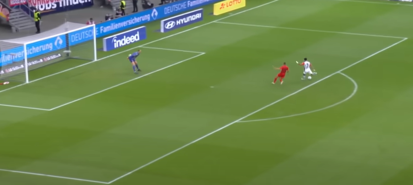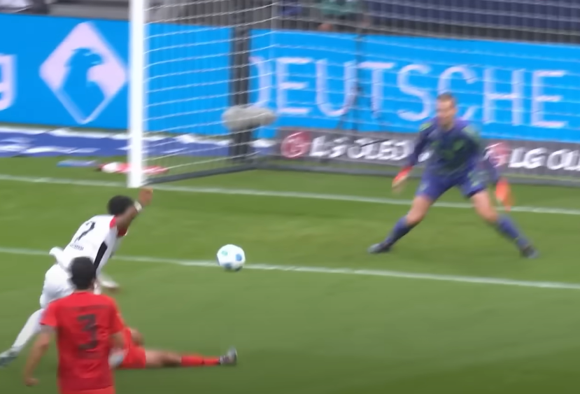 Also selbst wenn #Neuer vom 5er startet & aggressiv durchläuft kommt es mindestens zu einer 50/50-Szene. #Vinicius kommt ca. 13m vor dem Tor zum Abschluss. Da wäre er nicht wie gegen Ungarn zu spät gewesen denke ich. ().