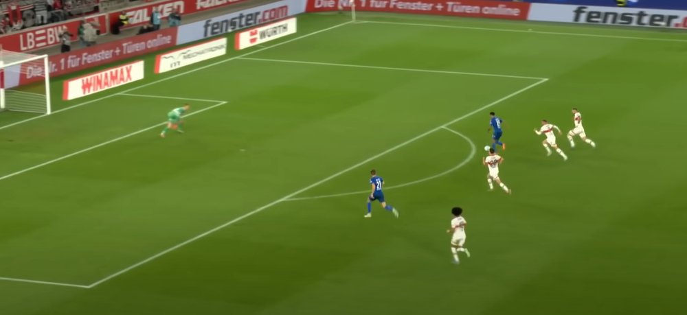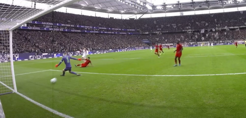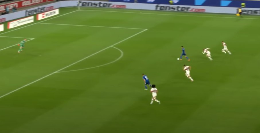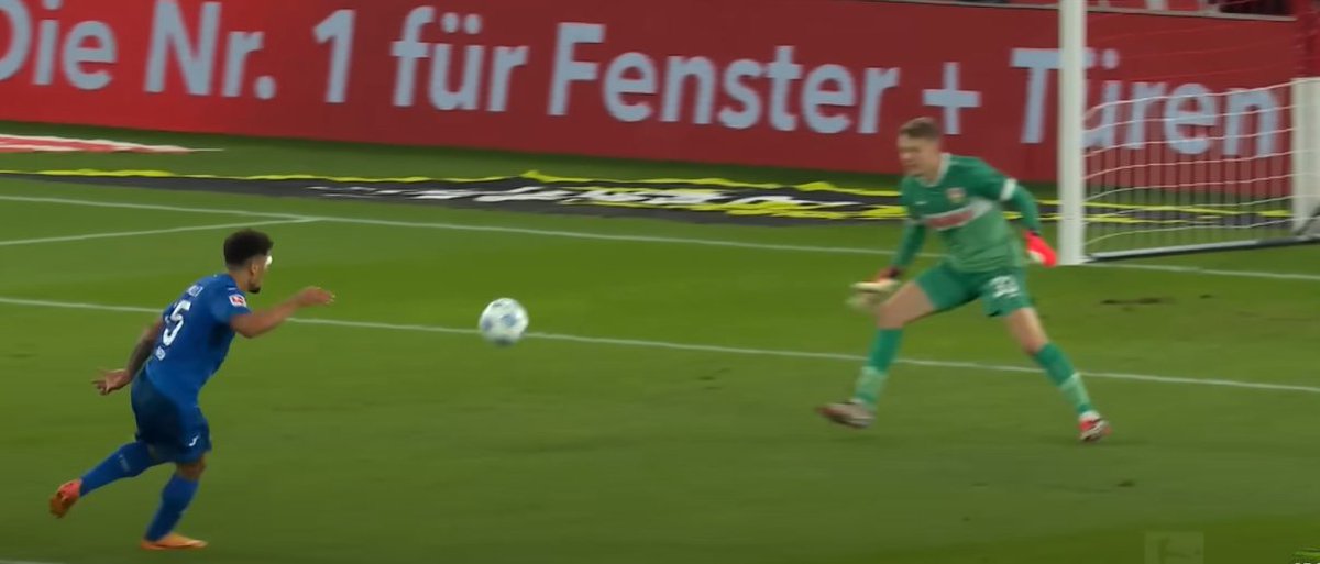 Ganz komische Aktion. #Nübel muss geduldiger sein. Aus der Distanz ist ein 1gg1 noch nicht ganz reif. Wenn Gendrey den nächsten Kontakt innerhalb des 16ers setzt kann er aus dem 5er schieben. So hat er keine gute Distanz & ist beim Schuss nicht fertig