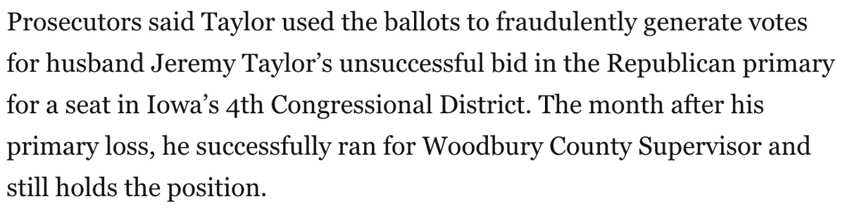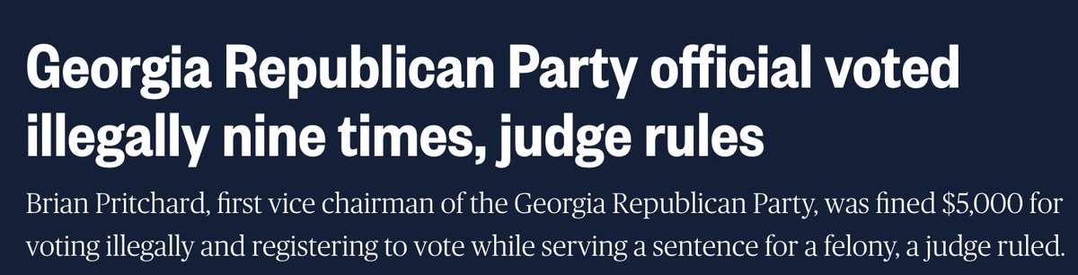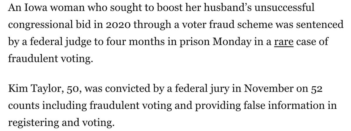 Right-wing influencers like @mayemusk proclaim that illegal voting is safe and easy. Gullible Republicans believe them, commit crimes, and get caught and punished (example 2). nbcnews.com/politics/polit…