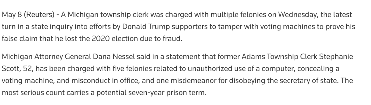 @mayemusk Right-wing influencers proclaim that illegal voting is safe and easy. Gullible Republicans believe them, commit crimes, and get caught. (Example 3) reuters.com/world/us/repub…
