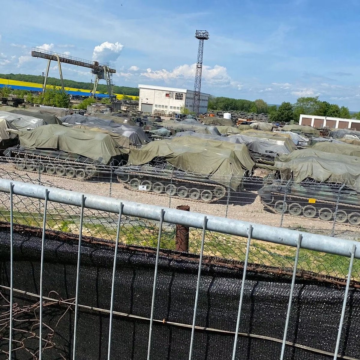 Let’s take a closer look. The facility is working with Marder IFVs, Gepard SPAAGs, Leopard 1s, and other vehicles based on these tanks. You’ll find rows of old Gepards that have been here for years, alongside 'fresh' Marders and Gepards under blue tarps.