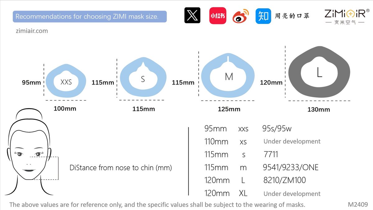 *Size options + filter model numbers table and sizing chart from @zhouliang_mask
