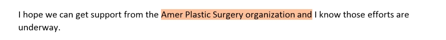 3/ Coleman had “hope[d]” that the “Amer Plastic Surgery organization” (i.e., the American Society of Plastic Surgeons) would endorse SOC8 and said that efforts to that effect were “underway.”